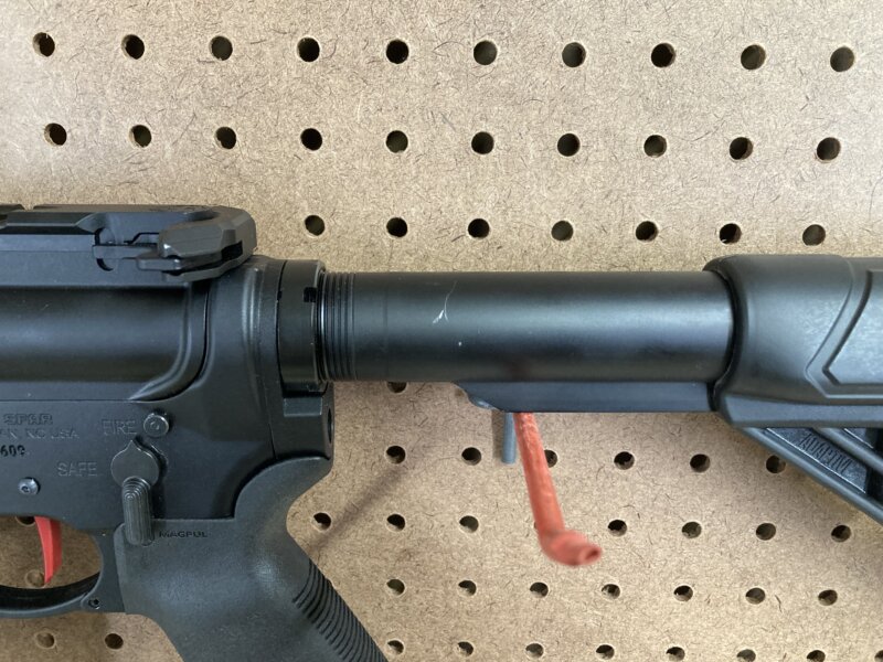 Mark on buffer tube. Comes with 1 20rd amend 2 magazine. Has rise armament single stage trigger.
