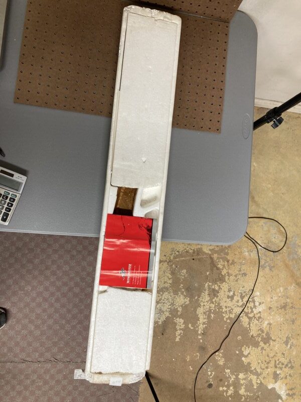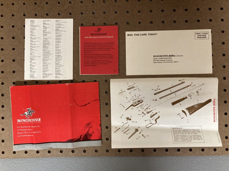 Unfired. Comes with box, foam, manual and paperwork. Blemish on barrel and barrel band. Box and foam have wear.